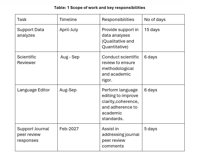 Research consultant/Reviewer – Research Review, Data Analysis, and Publication Support.